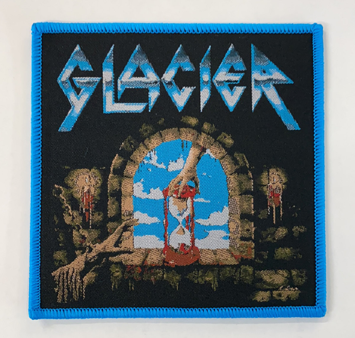 This is a 3.75" x 3.75" cloth patch depicting the 1985 Glacier EP cover artwork.